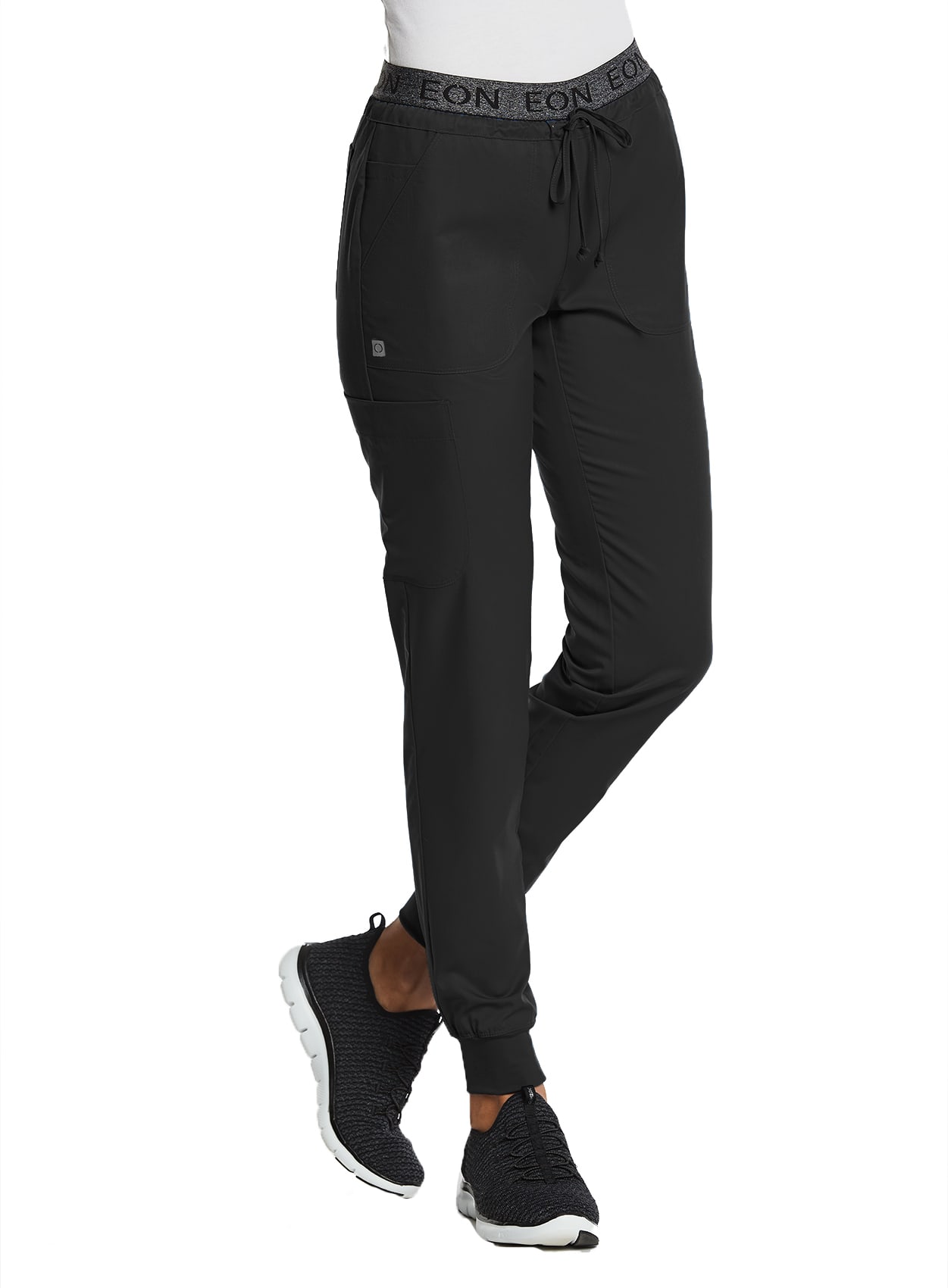 Eon Sport *Modern fit *Womenโs full elastic logo waistband jogger pant *Dyed-to-match drawstring *Two front patch pockets with a utility pocket *One cargo patch pocket and two back patch pocket *Dyed-to-match knit at leg hem