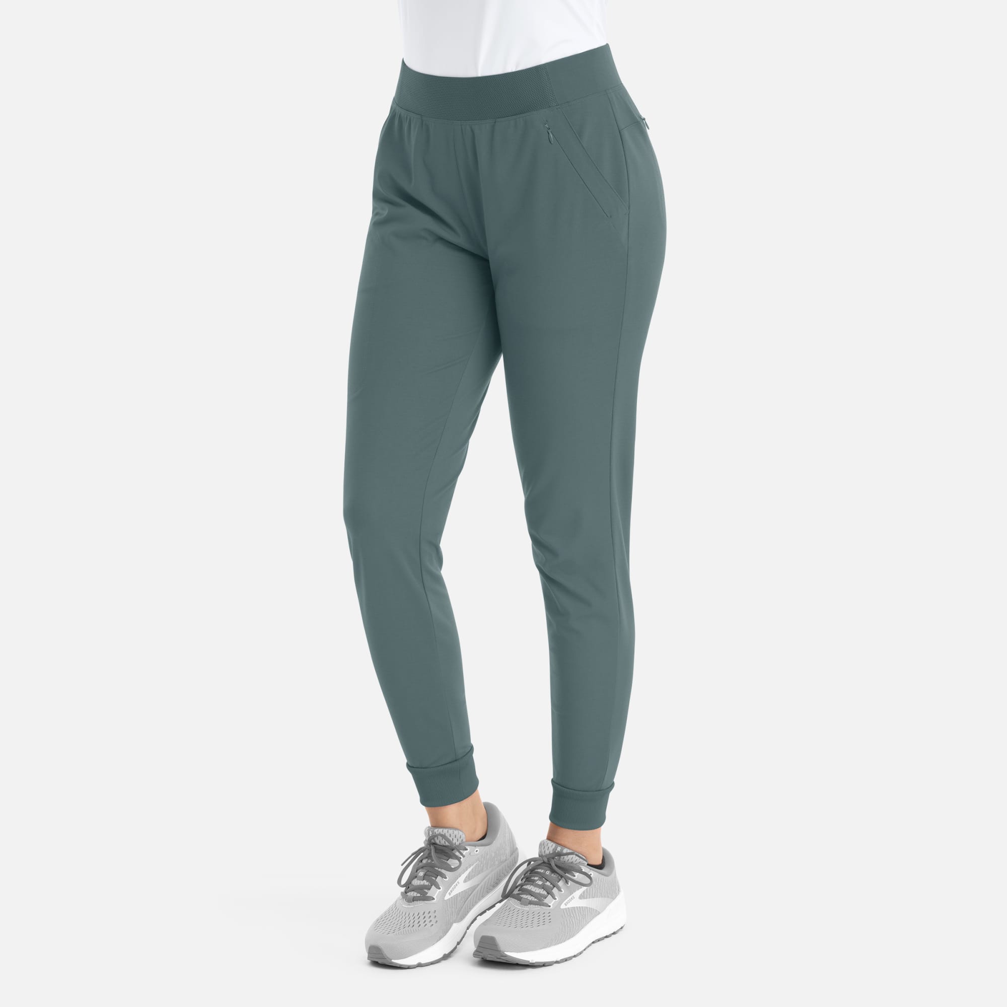 Focus *Comfortable slim fit *Premium double-knit fabric *Total of 6 pockets: 1 front hidden slash zip pocket and 1 hidden side zip pocket, 2 front trouser pockets, 2 secure back hidden zip pockets *Dye-to-match contrast mesh elastic waist band *Back yoke for added style and comfort *Jogger leg with DTM rib ankle cuffs