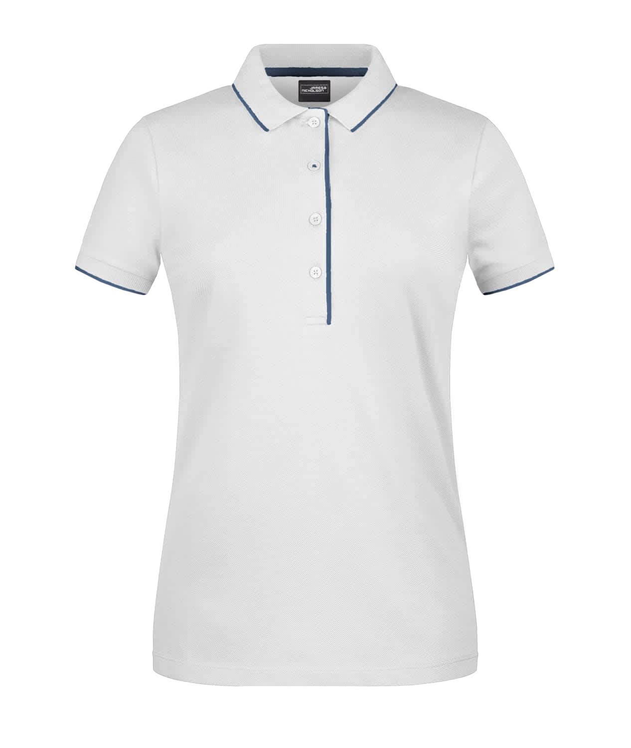 High-Quality Piquรฉ Combed, Ring-Spun Cotton Knitted Polo Collar And Sleeve Cuffs With Contrasting Stripe Button Placket On The Inside In Contrasting Colour Buttons Tone In Tone Side Slits Jn727: Waisted Form, 4 Buttons Jn728: 3 Buttons