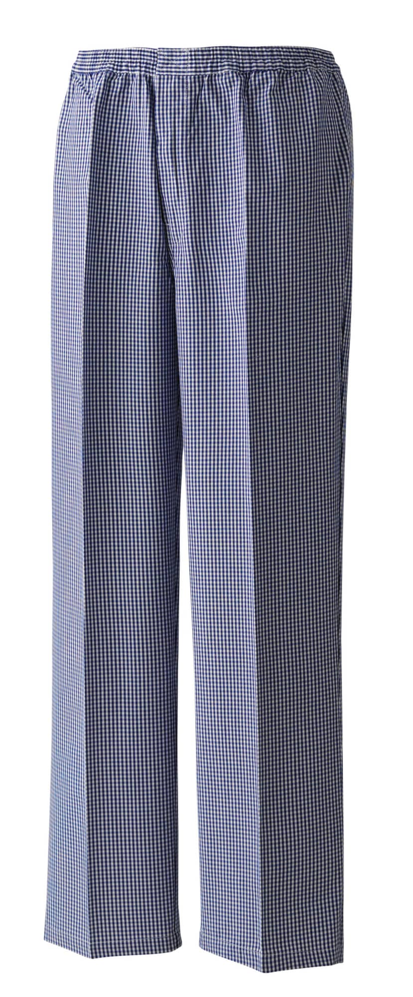 | Product_features | Elasticated waist for easy pull-on Rear patch pocket and zip fly Contrast square check pattern XS 28/30" S 32/34" M 34/36" L 36/38" XL 38/40" 2XL 42/44" Industrial laundering at 85c. Domestic wash at 60c |