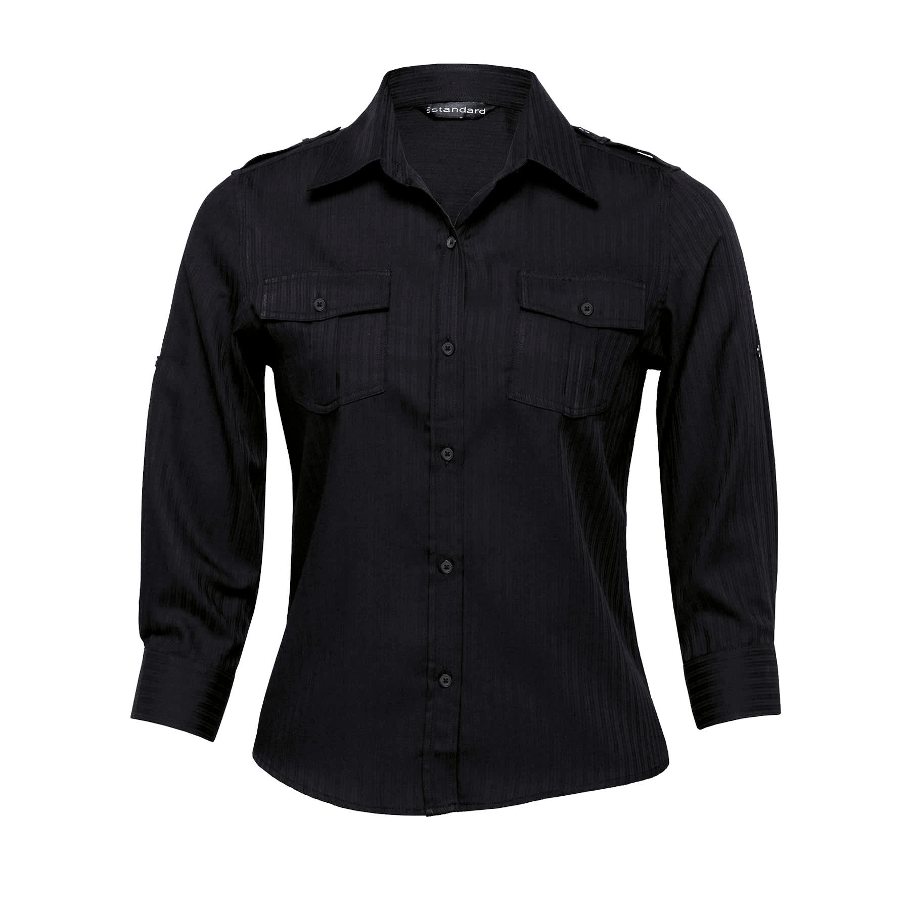 65% polyester 35% cotton yarn dyed jacquard|Tapered fit|Fashion collar|Eaulettes on shoulders|Twin buttoned chest pockets|¾ sleeve adjustable to short sleeve with sleeve tab|Box pleat on back yoke | Contoured hemline